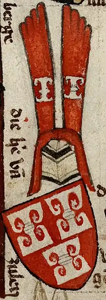 | Blasonnement | "D'argent, à trois zulles de gueules." |