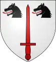 | Blasonnement | Parti : au I d'or à l'aigle bicéphale de gueules ; au II, écartelé, au 1 et 4 de gueules au sautoir d'hermine accompagné en pointe d'une molette d'or, au 2 et 3 de sable au lion d'argent armé, lampassé et couronné à l'antique d'or[1]. |