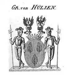 La famille est élevée au rang de comte prussien héréditaire le 29 janvier 1800 (pour les frères Georg Friedrich von Hülsen, seigneur d'Arensdorf en Prusse-Orientale, Bernhard Wilhelm von Hülsen, seigneur de Wesselshöfen (de) en Prusse-Orientale et Ernst Ludwig von Hülsen, seigneur de Dösen en Prusse-Orientale )[3],[4]. Une autre élévation au rang de comte (primogéniture) est effectué le 10 septembre 1840 pour Gustav von Hülsen, seigneur de Wiese en Prusse-Orientale. Enfin, Dietrich von Hülsen-Haeseler, adjudant d'aile, (primogéniture) le 12 février 1894, Georg von Hülsen-Haeseler, chambellan prussien et régisseur général royal le 27 janvier 1909 et Botho von Hülsen le 14 novembre 1910, sont élevés au rang de comte prussien[5].