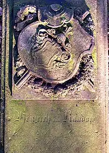 Les armoiries de la famille montrent un bouclier de gueules bordé d'argent dans un bouclier de gueules; en héraldique , sur fond rouge, un intérieur argenté . Sur le casque aux lambrequins de gueules et argent, trois plumes d'autruche (de) (rouge, argent, rouge) poussent à partir d'un renflement rouge et argent, qui à son tour est couronné de trois roses rouges, entre lesquelles se dressent deux petits drapeaux flottant vers l'extérieur, divisés en rouge sur argent. Les drapeaux sont souvent représentés divisés en argent sur rouge.