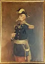 - Jean-Rémond de Butler[44] (1839-1907), petit-fils du précédent, Saint Cyr (1859-1861, "Nice et Savoie"), général de brigade, commandeur de la Légion d'honneur, combat à la Bataille de Mars-la-Tour en 1870, commande le 5e Chasseurs d'Afrique puis le 10e Dragons. Avec son épouse Marie Dubrueil, ils font construire le château de Kermaria dans l'Aveyron.