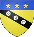 Armes : d'azur à un chef cousu de gueules, émanchi d'or de trois pièces.[3] ou D'azur, au chef cousu de gueules émanché de trois pièces d'or.