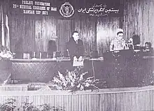 Après la démission de Sharif-Emami, il fut décidé qu'un gouvernement militaire devrait assurer la paix et l'ordre. Le général Oveyssi était pressenti. Farah Pahlavi était contre la nomination d'Oveyssi, gouverneur militaire de Téhéran lors du massacre de la place Jaleh[50]. Le Shah choisit alors finalement le général Gholam Reza Azhari. Après avoir restauré une apparence de calme, Azhari fit arrêter l'ancien Premier ministre Amir Abbas Hoveyda. Farah Pahlavi était présente à la réunion cruciale au cours de laquelle avait été décidée l'arrestation d'Hoveyda, « mais ne prit pas la parole pour clairement se prononcer contre cette décision »[51]. Avec l'arrestation d'Hoveyda, le gouvernement voulut présenter à l'opposition une volonté de réparer des erreurs passées en envoyant en prison un responsable sans hésitation. Hoveyda n'avait rien à se reprocher et s'attendait à un acquittement ultérieur. Parmi les autres personnes arrêtées se trouvaient Manouchehr Azmoun, ancien ministre sans portefeuille, Dariush Homayoun, ancien ministre de l'information et du tourisme, Mansur Ruhani, ancien ministre de l'agriculture, le général Nassiri, ancien chef de la SAVAK, Manouchehr Nikpay, ancien maire de Téhéran, le général Sadri, ancien chef de la police de Téhéran, Abdulazim Valian, ancien gouverneur de Khorassan, Shaychulislam Zadeh, ancien ministre de la santé, Nili Aram, ancien sous-ministre de la santé, et Fereydoun Mahdavi, ancien ministre de l'économie[52]. Khomeyni commenta les arrestations de son exil à Paris :