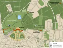 Le Fasanenschlösschen sur le plan urbain de Friedrich Weinbrenner dans les années 1820.