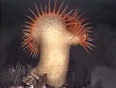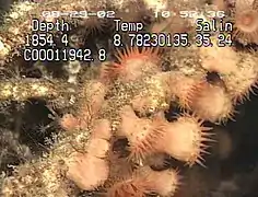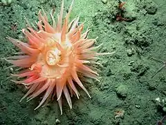 Une actinie photographiée à 1874 mètres de profondeur (mont sous-marin de Davidson).