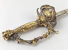 « L’épée du Comte de Paris, payée 15 000 francs-or en 1842 par la ville de Paris, demanda le concours des quinze artisans dont : Klagmann fourbisseur, Wechte ciseleur, Bourdereau incrusteur, Lendret doreur, Plantin graveur en eau-forte et dessin, Paul Bled ciseleur de chiffres, (…) Cendret doreur de garnitures, (…), Lemoyne gainier, Bressonel soudeur, Massant serrurier, Duphau soudeur d’écrous pour les ajours dans les garnitures, Gollé maroquinier posa le chagrin sur le fourreau et Trouilleau fit des filets dorés sur le cuir[16]. »