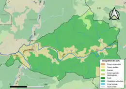 L'occupation des sols de la commune, telle qu'elle ressort de la base de données européenne d’occupation biophysique des sols Corine Land Cover (CLC), est marquée par l'importance des forêts et milieux semi-naturels (74,9 % en 2018), une proportion sensiblement équivalente à celle de 1990 (74,9 %). La répartition détaillée en 2018 est la suivante : forêts (73,1 %), zones agricoles hétérogènes (22,3 %), prairies (2,8 %), milieux à végétation arbustive et/ou herbacée (1,8 %)[19].