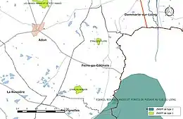 | « Étangs, bocage, landes et forêts de Puisaye au sud du Loing » | type 2[Note 3] | 18 396 hectares | Cette zone s'étend sur 20 communes[DREAL 3]. Son altitude varie entre 145 et 313 m[INPN 9]. Le principal habitat déterminant est celui d'eaux douces stagnantes[INPN 10]. |