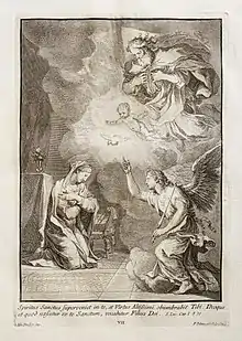 - La vie de la Vierge, suite de vingt-deux gravures d'interprétation d'après Nicolas Poussin et Jacques Stella, 1756[14].