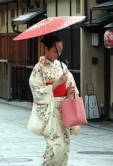 Le kimono, habit traditionnel, n'est pas réservé aux geishas. Il est porté lors occasions spéciales aussi bien par les femmes que par les hommes[17].