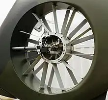 - réduction du niveau sonore du fait du carénage pouvant intégrer des absorbants acoustiques, du grand nombre de pales et de leurs divers angles d'incidence.