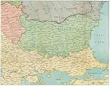 Mais, à l'été 1915, lorsque l'intervention de la Bulgarie dans le conflit se dessine, le roi, « très porté sur les agrandissements territoriaux », selon un rapport allemand[43], négocie avec les deux alliances pour obtenir les meilleures conditions : il obtient la Macédoine serbe et grecque, mais assortie de conditions s'il se range du côté de l'Entente[N 1], sans conditions s'il rejoint les puissances centrales; de plus, il se voit promettre des territoires en Thrace ottomane[44]. Le 5 octobre 1915, refusant les termes de la note russe sommant le royaume de rompre avec les puissances centrales, le roi des Bulgares signifie aux puissances engagées dans le conflit son entrée en guerre aux côtés des puissances centrales[45].