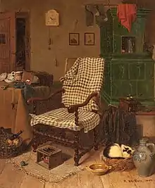Salon avec une chaise de couture et un chat qui dort, 1848