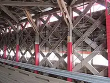 Celle-ci repose sur l'emploi de madriers de taille standard de deux à quatre pouces (51 à 102 millimètres) d'épaisseur et de dix à quatorze pouces (254 à 356 mm) de largeur disposés en un treillis maillé selon un angle allant de 45 à 60 degrés[1]. Les madriers sont solidarisés par des chevilles à chaque nœud[1]. La présence de deux cordes de bois aux extrémités en assure la solidité[1].