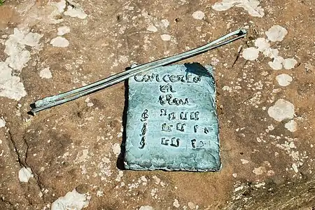Cette œuvre réalisée, par Jocelyne Aubin en 2001, comporte 50 blocs de pierre dont une porte une sculpture en bronze représentant un archet et une partition[31]. Pour cette composition, l'artiste d'origine bretonne, qui a installé son atelier en 1992 dans l'ancienne forge de la ferme du Biéreau[32], s'est inspirée de la légende de la fée Mélusine[31],[33].
