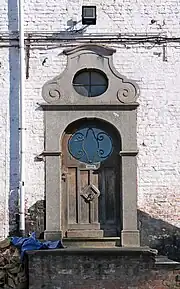 Le corps de logis, qui remonte au XVIIIe siècle, possède une porte d'inspiration baroque dont l'encadrement de pierre bleue est surmonté par un petit entablement mouluré supportant un fronton à volutes percé d'un oculus ovale sommé d'une clé et d'un larmier en forte saillie[7],[8].