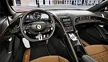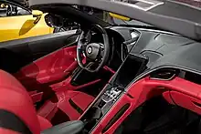 À l'intérieur, la Roma dispose d'une instrumentation digitale composée d'un écran de 41 cm, et la planche de bord reçoit un écran tactile de 21 cm pour la navigation et l'info-divertissement ainsi qu'un petit écran devant le passager[12].
