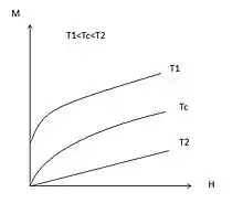 En présence d'un champ magnétique extérieur, les moments magnétiques ont tendance à s'aligner dans la direction du champ magnétique. La courbe de la valeur de l'aimantation M en fonction du champ magnétique H adopte des allures différentes selon la température du matériau.