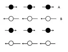 Dans un matériau ferrimagnétique, on peut diviser la structure cristalline en plusieurs sous-réseaux de moments magnétiques différents, mais dont la somme vectorielle de ces moments est non nulle. Dans le cas simple d'un ferrimagnétique divisible en deux sous-réseaux A et B, les moments MA et MB associés respectivement aux sous-réseaux A et B cités précédemment sont opposés en direction mais de valeurs différentes.