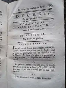 - Code pénal de 1791#Titre Premier – Des peines en général