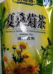 En Chine, lors de l'épidémie de Covid 19 (2022) ont été développés des thé préventifs ou curatifs qui comprennent des extraits de feuilles de mûrier dans des mélanges (avec chrysanthème, zeste de mandarine, ginseng, réglisse, etc.)[79] , thé de mûrier au lys (lys, feuilles de mûrier, chrysanthème, muguet du Japon (Ophiopogon japonicus), chenpi de mandarine).