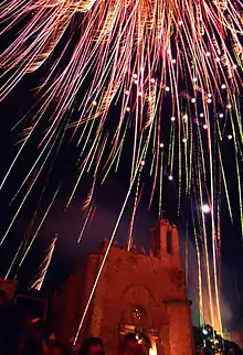 Feux d'artifice explosant sur l'église à Atotonilco de Tula (en), au Mexique.