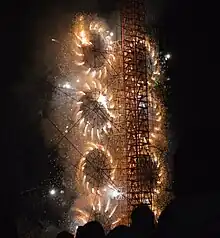 Au Mexique, les feux d'artifice, en particulier les grosses roquettes appelées « cohetones» (fusées), sont une animation de base des fêtes patronales[8]. Les fêtes religieuses, même dans les plus petites villes, ont des feux d'artifice qui peuvent inclure des images du saint patron sur un cadre décrit dans des pièces pyrotechniques. Cela est particulièrement vrai pour les grands lieux de pèlerinage tels que celui de Notre-Dame de San Juan de los Lagos (en)[2]. Le jour le plus important des ventes de feux d'artifice est le jour de l'indépendance du Mexique. Lors de la célébration du Bicentenaire de l'indépendance du Mexique (es) sur le Zocalo ou la place principale de la ville de Mexico, plus de 2 400 obus composent le spectacle multimédia qui commence par une reconstitution de l’appel des troupes lancé par le père Miguel Hidalgo à 23 h le [12].