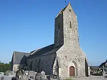 - Église Saint-Pierre des XIIIe, XIVe – XVIIIe siècles, avec sa sacristie semi-circulaire, en saillie, édifiée au XVIIIe siècle, sur un chevet plat à l'origine. Elle a conservé du « siècle de Saint Louis » les petits chapiteaux de la porte en arc brisé de la façade occidentale ainsi que les chapiteaux au décor feuillagé de la retombée de l'ogive de l'arc triomphal. L'édifice a été agrandie de la chapelle nord, bâtie par Jean de Briroy, seigneur de Fierville, entre 1570 et 1598, et la chapelle sud, consacrée à saint Joseph, bâtie par Nicolas de Harcourt († 1673), seigneur et curé de la paroisse de 1642 à 1666[48]. À droite de la porte, sur la façade ouest, une pierre rectangulaire placée ici évoque René Le Chevalier[Note 8]. : « Cy devant gist le corps de Mre René Le Chevalier, Pbre (prêtre), vicaire et M(ait)re d'échole de ce lieu lequel a donné 15 l(ivres) de rente à l'église. Décédé le , pries Dieu pour le repos de son âme. pater ». Quant à la pierre du seuil du portable, aujourd'hui illisible et déchiffrée par Robert Asselin, elle évoque Nicolas de Harcourt : « Cy gist le corps de vénérable et discrette personne mes(sire) Nicolas (de Har)court e(n) so(n) viva(nt) pretre, seig(neur) et curé de ce lieu, après avoir fo(n)dé e(n) cet(te)… le St Rozaire. Plus(ieurs) obit(s), charitez, décéda le 15 de novembre 1673. Priez Dieu pour lui »[48],[Note 9].
