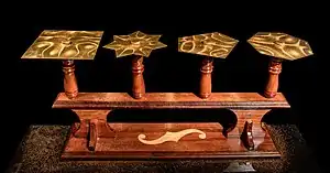 Une plaque horizontale est fixée de manière rigide sur un support central. Elle peut être de taille, de forme et d'épaisseur variée. Historiquement, les plaques utilisées par Chladni étaient en métal, mais de nombreux matériaux[N 2] permettent la formation de motifs nets et nombreux.