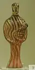 | Figurine féminine aux bras levés. | Statuette en terre cuite peinte. | 1250 à 1180 av. J.-C. HR IIIB2 |
