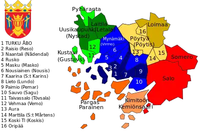 | Sauvo | municipalité | 2 999 | 299,48 | 11,87 | Turku | - |