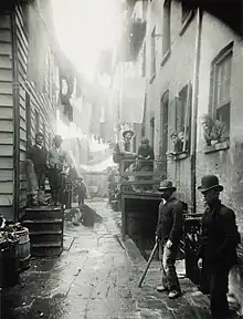 Au cours des années 1880, les politiques de « nettoyage » des bidonvilles qui permettent de raser le quartier de Five Points, afin de reconfigurer la zone, ne font finalement que déplacer le problème puisque les habitants du quartier migrèrent vers la Lower East Side, située plus au nord, et les conditions de vie s'effondrent avec l'afflux d'immigrants italiens et chinois[1].