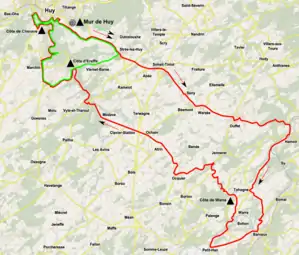 Le parcours est changé dans son début avec un boucle vers le sud-est. Un grand circuit suivi d'un tour d'un petit circuit sont au programme. Sept côtes sont répertoriées pour cette édition :