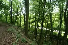 La faille marque le relief de la commune, au-dessus des falaises créées par la faille, on a de fortes zones d'urbanisations, comme Les Trixhes, et en dessous également, avec le centre de Flémalle. Cette faille fut longtemps exploitée par différentes carrières. Celles situées derrière le village de Chokier ont donné naissance à la réserve naturelle "Aux Roches". L'altitude de la commune est comprise à son minima à 62 m (le long de la Meuse) et à son maxima à 238 m (dans l'extrême sud de la commune)[7]. Bien que le sud soit plus haut que le nord, c'est au nord que l'on remarque la faille, notamment avec le château de Chokier qui est perché sur un promontoire. Le long de la Meuse, le terrain est plat, au nord, le terrain est vallonné, notamment aux Awirs avec le ruisseau, le sud connaît une élévation constante.