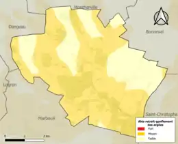 Le retrait-gonflement des sols argileux est susceptible d'engendrer des dommages importants aux bâtiments en cas d’alternance de périodes de sécheresse et de pluie. 68,8 % de la superficie communale est en aléa moyen ou fort (52,8 % au niveau départemental et 48,5 % au niveau national). Sur les 112 bâtiments dénombrés sur la commune en 2019, 28 sont en aléa moyen ou fort, soit 25 %, à comparer aux 70 % au niveau départemental et 54 % au niveau national. Une cartographie de l'exposition du territoire national au retrait gonflement des sols argileux est disponible sur le site du BRGM[16],[Carte 2].
