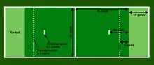 D'après les règles de l'IFAF[4],[5], deux équipes de cinq joueurs s'affrontent sur un terrain large de 25 yards et long de 70 yards (environ 22,86 sur 64 mètres).