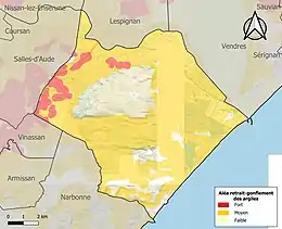 Par ailleurs la commune fait partie de l'aire d'attraction de Narbonne, dont elle est une commune de la couronne[Note 5]. Cette aire, qui regroupe 71 communes, est catégorisée dans les aires de 50 000 à moins de 200 000 habitants[I 5],[I 6].