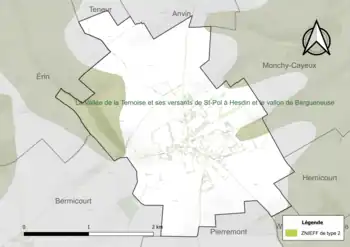 Le territoire communal comprend une ZNIEFF de type 2[Note 2] : la vallée de la Ternoise et ses versants de Saint-Pol-sur-Ternoise à Hesdin et le vallon de Bergueneuse. Cette ZNIEFF, située au nord d'une ligne allant de Saint-Pol-sur-Ternoise à Hesdin, d’une superficie de 9 502 ha et d'une altitude variant de 22 à 90 m, présente des fonds de vallées, des coteaux crayeux et des zones prairiales[11].