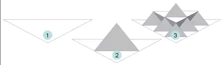 Au bout de ces trois étapes, l'objet résultant a une forme similaire à une section transversale d'un chapeau de sorcière.