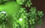 | 2D & sphères | ![]() Sphereflake | Eric Haines a développé la fractale sphereflake (litt. flocon de sphère), extension du flocon de Koch, construite à base de sphères. |