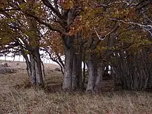 Dans le sud du massif (Causses et Cévennes), les spécificités quant à la nature du sol et du climat induisent une flore particulière avec un taux d'endémisme plus élevé que dans le reste du Massif central[12],[N 8]. La hêtraie est toujours présente, en particulier dans les Cévennes, même sur les versants sud car ceux-ci sont exposés aux pluies venant de Méditerranée (mont Aigoual en particulier). Dans les Causses, elle ne se maintient que sur les versants exposés au nord, les versants sud et les plateaux étant surtout occupés par de maigres pâturages, favorables à de petits arbustes délaissés par les ovins comme le Buis (Buxus sempervirens) ou le Genévrier cade (Juniperus oxycedrus), parfois ponctués de bois de chênes et de pins[12]. Ces pâturages ne sont pas homogènes et sont dominés tantôt par des Poacées (Brome dressé, Fétuque glauque, Seslérie bleue, Fétuque rouge ou la très emblématique Stipe pennée), tantôt par d'autres plantes comme le Serpolet, le Carex humble ou le Brachypode penné.