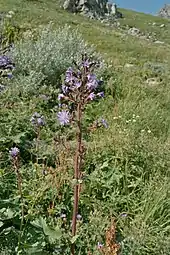 | Raiponce occidentale[N 17] | Phyteuma spicatum subsp. occidentale | Campanulacées | Hêtraies, prairies | Présente un peu partout | >800 m | ![]() | |