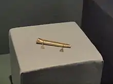 - Cerveteri, nécropole de Monte Abatone, tombe 4, chambre de gauche, VIIe siècle av. J.-C.,impasto H= 4,5 cm ; L= 44 cm ; l= 16 cm, inv. 87955, Cerveteri, musée national cérétain