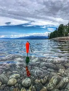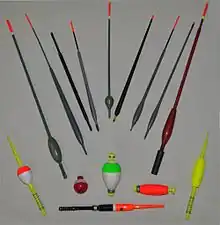 Le flotteur, ou bouchon, est un accessoire insubmersible monté sur une ligne de pêche et qui permet, notamment, de visualiser une touche lorsque le poisson mord à l'appât.