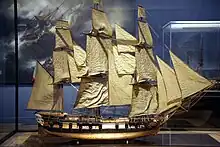 - Ce type de navire est assez similaire aux corvettes[17]. Il possède trois mâts et aligne une douzaine de canons, calibre 24 ou 18[17].