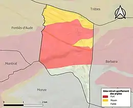 Le retrait-gonflement des sols argileux est susceptible d'engendrer des dommages importants aux bâtiments en cas d’alternance de périodes de sécheresse et de pluie. 82,6 % de la superficie communale est en aléa moyen ou fort (75,2 % au niveau départemental et 48,5 % au niveau national). Sur les 173 bâtiments dénombrés sur la commune en 2019, 173 sont en aléa moyen ou fort, soit 100 %, à comparer aux 94 % au niveau départemental et 54 % au niveau national. Une cartographie de l'exposition du territoire national au retrait gonflement des sols argileux est disponible sur le site du BRGM[29],[Carte 3].