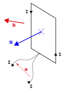 Si on branchait une simple résistance sur ce cadre, alors cette tension aurait tendance à faire circuler un courant i qui créerait lui-même un flux ajouté, tentant de maintenir le flux total constant.