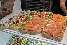 La focaccia est un pain de forme plate et cuit au four. Originaire d'Italie, malgré les apparences, elle n'est pas liée à la pizza mais le style et la texture sont similaires. Elle est également considérée comme la version italienne de la fougasse. Elle peut être agrémentée d'autres ingrédients. Elle est généralement assaisonnée avec de l'huile d'olive et du sel, et parfois des herbes et éventuellement agrémentée d'oignon, de fromage, de viande ou de légumes.