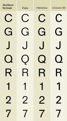 Comme Helvetica et Univers, qui sont également éditées en même temps, Folio fait partie du Style typographique international et dérive d’Akzidenz-Grotesk. Toutefois, Folio est plus étroitement calquée sur Akzidenz-Grotesk que les deux autres, qui ont de plus grandes hauteurs d’x.