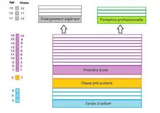 - De 17 à 19 ans, les élèves sont en enseignement secondaire, et ils ont le choix entre l'enseignement supérieur ou la voie professionnelle. Il s'agit des niveaux 10 à 12.